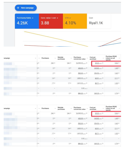 purchase : ( google : 4.260 - snapchat : 85 - Instagram 246 ] Total coast for 3 campaigns : 11.210 SAR